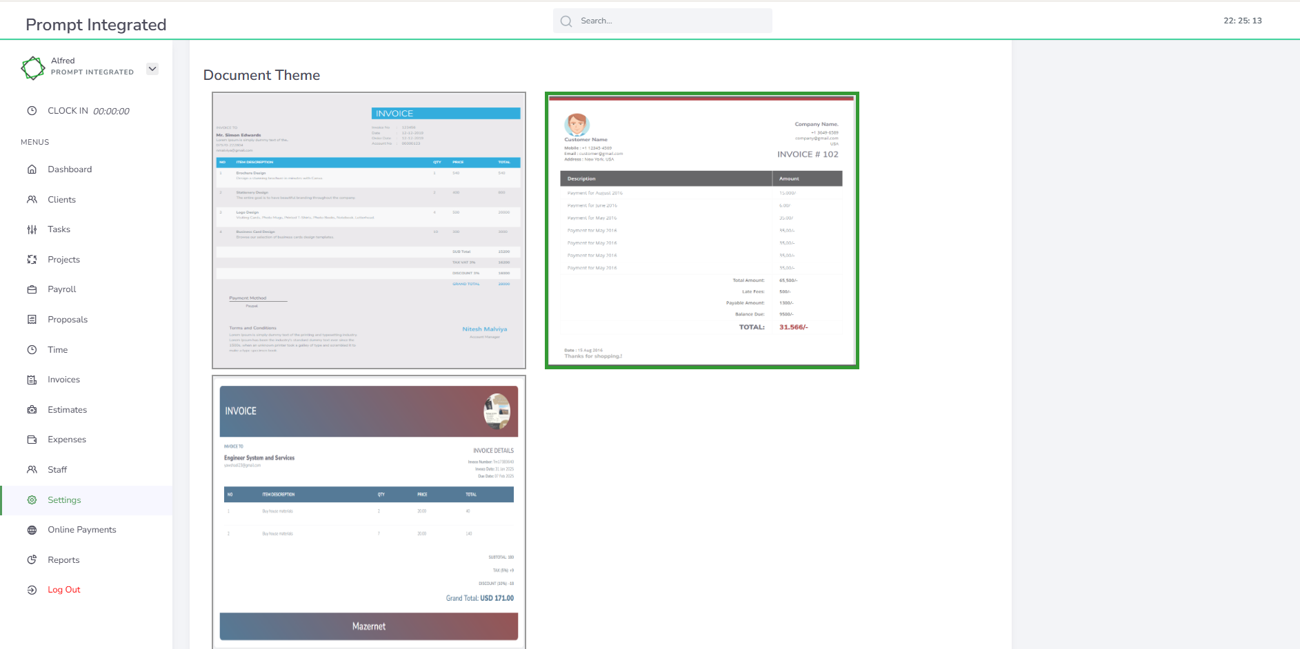 Both templates are fully customisable within Prompt Integrated’s invoicing platform, allowing businesses to upload their logo, apply their brand colours, and adjust the layout to suit their specific needs.