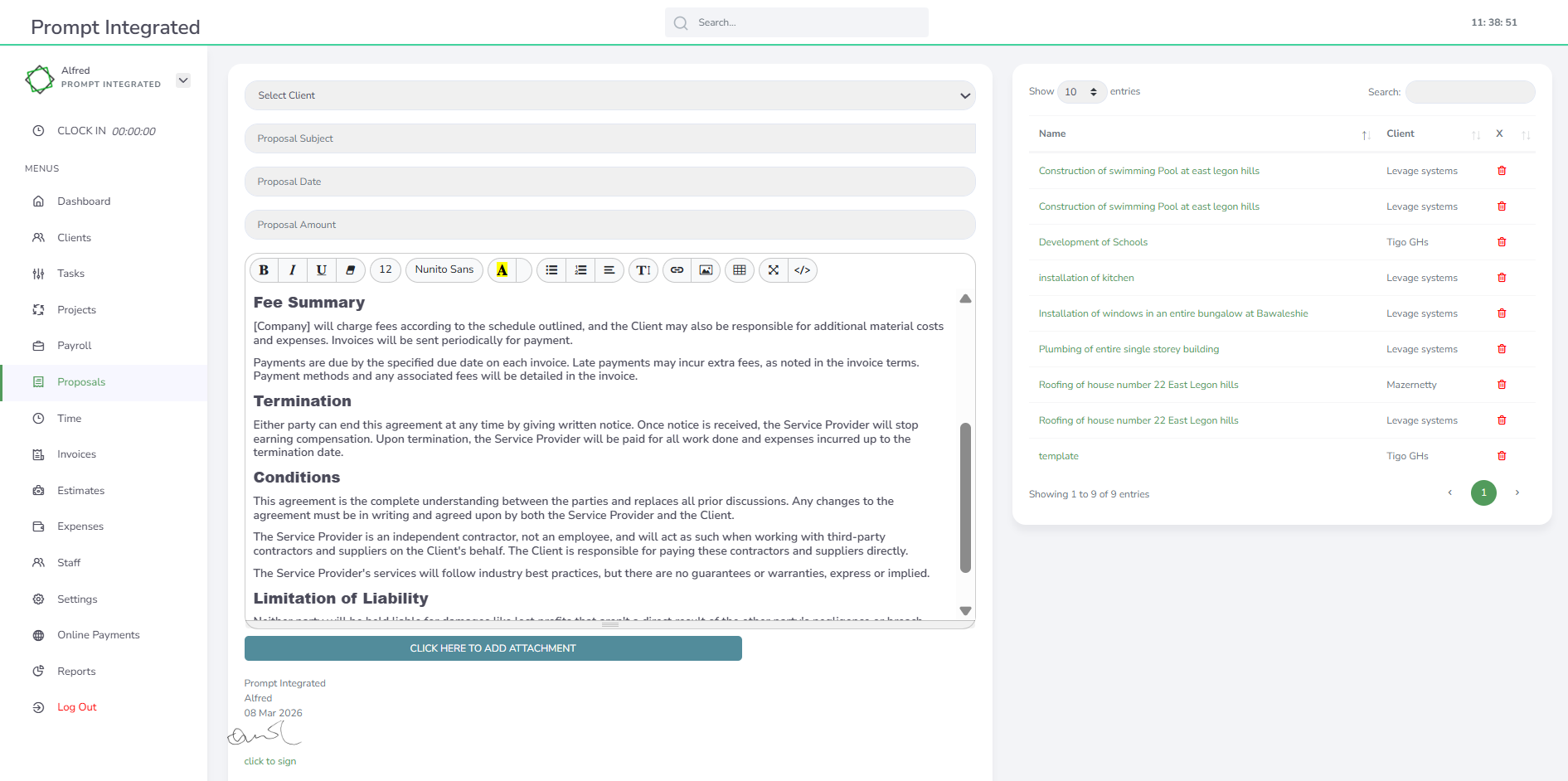 Prompt Integrated gives Ghanaian and African businesses the tools to create branded, professional proposals, close them with legally recognised e-signatures, and connect the entire process seamlessly to invoicing, project management, and payments — all from one cloud-based platform.